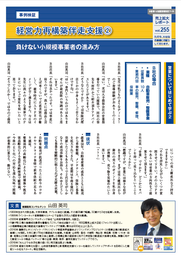 『山田式営業ノウハウ』の紹介を目的としたレポート。購読者数は3000名を超えていた時期も。 営業企画、販促、PR方法の具体例を始め、法人営業のノウハウなど指導事例をもとに営業エッセンスを紹介。近年は復興庁のハンズオンプロジェクトに関する小規模事業者に絞った法人営業の生事例を中心に配信中。